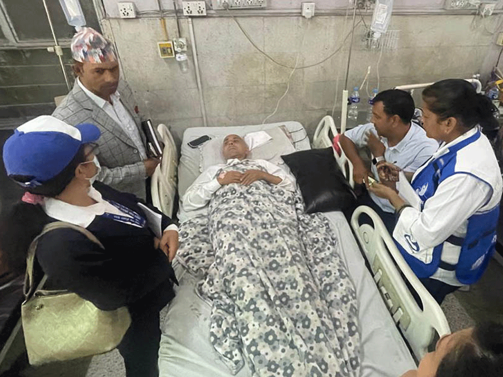 उनलाई प्रेसर लो, सुगर लो र चक्कर आउनेजस्ता समस्या देखिएको छ । हिजो राति साढे ११ बजे भट्टराईलाई अस्पताल भर्ना गरिएको थियो । गत साउन ११ गतेदेखि सात बुँदे माग राखेर माइतीघर मण्डलामा अनसन सुरु गरेका भट्टराईले माग पूरा गर्नुपर्ने तीन दिनको अल्टिमेटम दिएका थिए । तर, तीन दिनमा पनि माग पूरा नभएपछि हिजोबाट भने आमरण अनसन सुरु गरेका थिए ।