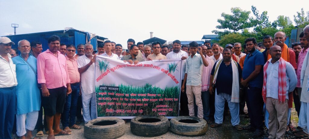 सर्लाही, २० साउन । सरकारले यो वर्षदेखि उखुको अनुदान रकम कटौति गरेपछि किसानले मङ्गलबारबाट आन्दोलन सुरु गरेका छन् । किसानले आज आ–आफ्नो जिल्लाको चिनी मिल अगाडि टायर बालेर प्रदर्शन गर्दै उखुको अनुदानका लागि आन्दोलन प्रारम्भ गरेका हुन् । देशभरमै सबैभन्दा बढी उखु खेती हुने सर्लाहीमा तीनवटै चिनी मिल अगाडि किसानले प्रदर्शन गरेका छन् । अनुदान माग्दै उखु किसानद्वारा प्रदर्शन उखुको अनुदान रकम माग गर्दै सर्लाहीको महालक्ष्मी सुगरमिल्स लिमिटेड अगाडि टायर बालेर उखु किसानले गरेको प्रदर्शन छ्न् । सरकारले यो वर्षदेखि उखुको अनुदान रकम कटौति गरेपछि किसानले मङ्गलबारबाट आन्दोलन सुरु गरेका छन् । किसानले आज आ–आफ्नो जिल्लाको चिनी मिल अगाडि टायर बालेर प्रदर्शन गर्दै उखुको अनुदानका लागि आन्दोलन प्रारम्भ गरेका हुन् । देशभरमै सबैभन्दा बढी उखु खेती हुने सर्लाहीमा तीनवटै चिनी मिल अगाडि किसानले प्रदर्शन गरेका छन् ।