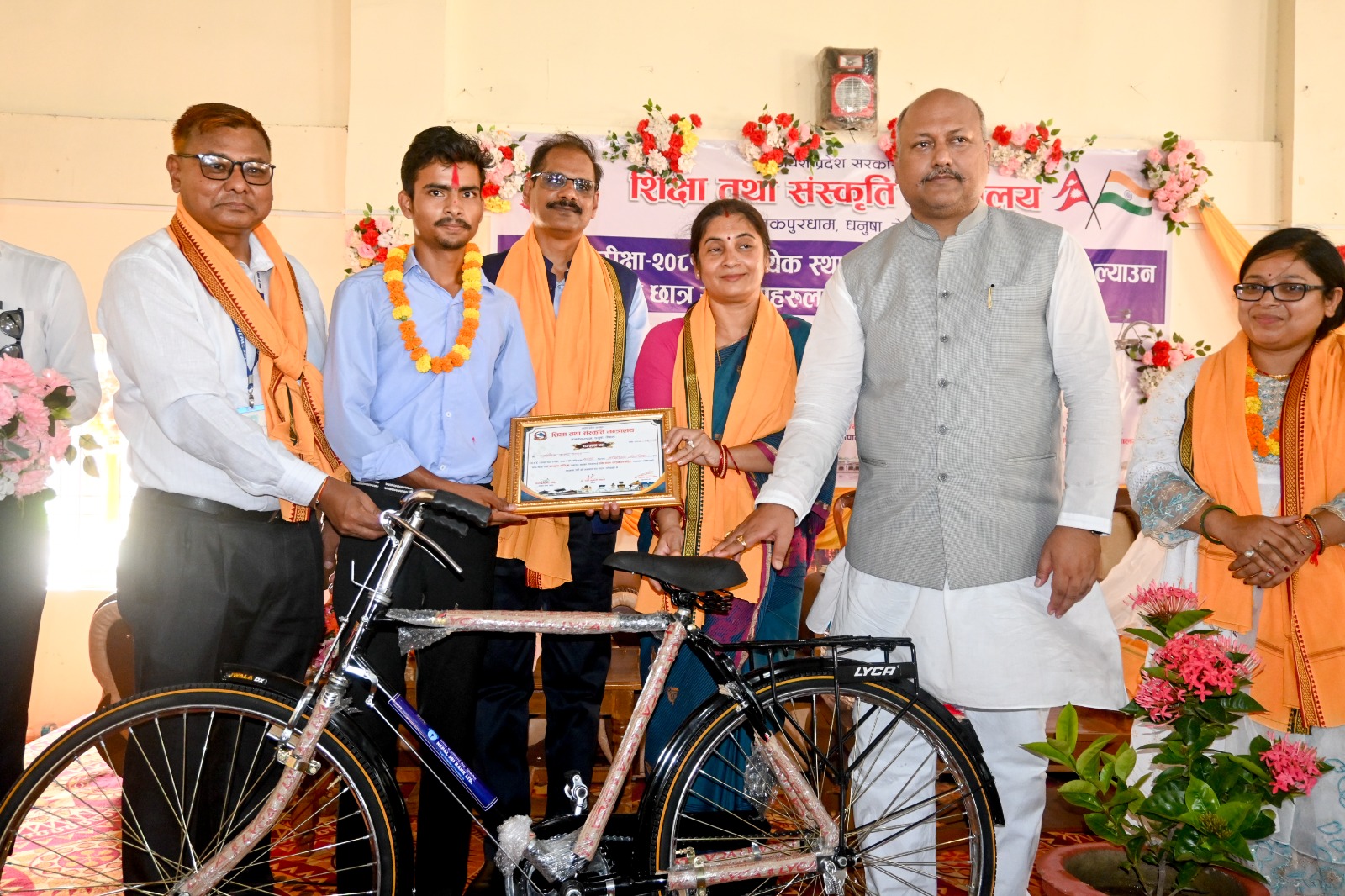शिक्षा तथा संस्कृति मन्त्रालयको आयोजना र भारतीय महावाणिज्य दूतावास वीरगञ्जको समन्वयमा मंगलबार सम्पन्न कार्यक्रममा एसईई परीक्षा–२०८१ मा उत्कृष्ट नतिजा ल्याउने विद्यार्थीलाई साइकल वितरण गरिएको हो ।