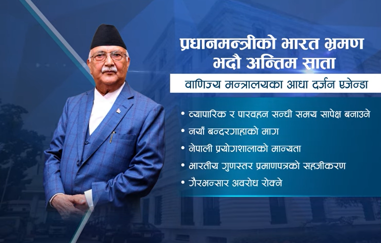 सर्लाही, १० भदाै । परराष्ट्र मन्त्रालयले प्रधानमन्त्री केपी शर्मा ओलीले भदौ अन्तिम साता गर्ने भारत भ्रमणको तयारी गरिरहेका बेला वाणिज्य मन्त्रालयले पनि भ्रमणका क्रममा उठाउनुपर्ने विषयमा विज्ञसँग छलफल सुरू गरेको छ ।