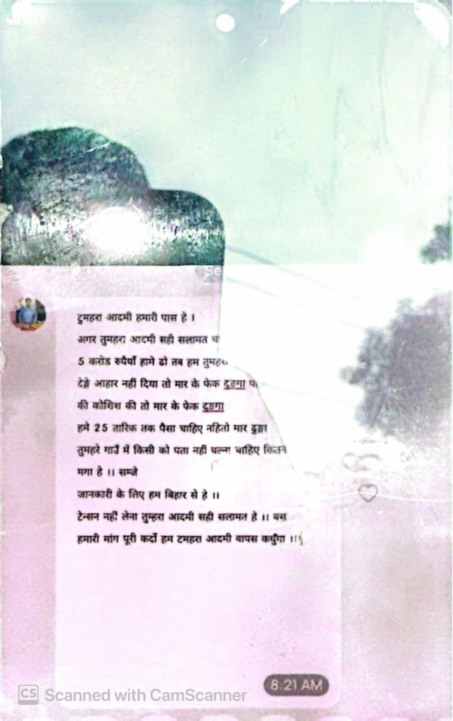 अपहरणकारीले हिन्दीमा पठाएको सन्देश यस्तो थियो