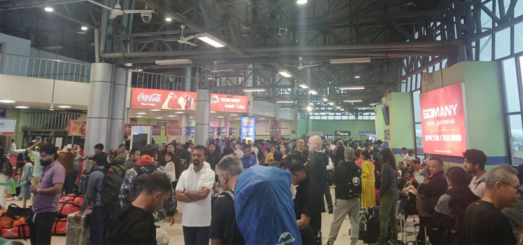 उडान हुन नसकेकाले आन्तरिक टर्मिनलमा यात्रुहरुको भिड लागेको छ ।