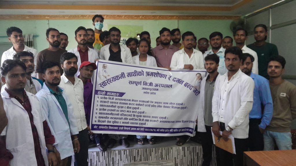 सर्लाही, २७ असोज । मधेश प्रदेशका विभिन्न निजी स्वास्थ्य संस्था (होस्पिटलहरु) मा कार्यरत युवा स्वास्थ्यकर्मीहरूले आफूहरू माथि हुँदै आईरहेको असमान व्यवहार तथा श्रम शोषण विरुद्ध आन्दोलनमा उत्रने चेतावनी दिएका छन् ।