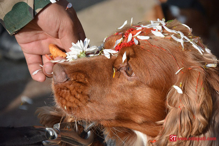 यमपञ्चकको दोस्रो दिन आज सम्पूर्ण नेपालीहरूले आफ्ना घर आँगनमा कुकुरलाई टीका, माला र मीठा खानेकुरा खुवाएर श्रद्धा र सम्मानपूर्वक पूजा गरिरहेका छन् ।