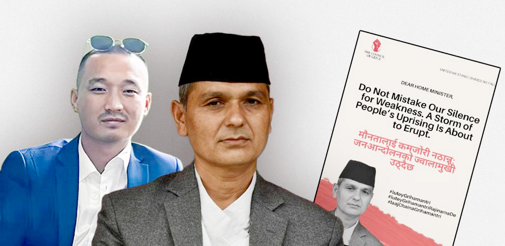 पोस्टरमा गृहमन्त्री अर्यालविरूद्ध तीनवटा ह्यासट्यागहरू पनि उल्लेख छन् । त्यसअघि उनले फेसबुकमै गृहमन्त्री अर्यालको लाचारीपनले बारामा बुधबार जेनजी माथि कुटपिट भएको आरोप लगाएका थिए ।