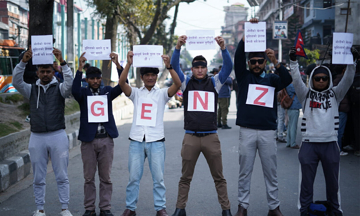 उनीहरूले ‘सुशीलाको पाराले, दु:ख पाए साराले’, ‘सम्पूर्ण जेनजी पुस्ता एक हौं,’ ‘ जेनजीको आडमा चुरीफुरी, सुशिला सरकार कुरीकुरी, ‘ओलीको खेलमा, सुशिलाको झेलमा, जेनजी सबै जेलमा’ लगायतका नारा बनाएका पम्प्लेट बोकेका छन् ।