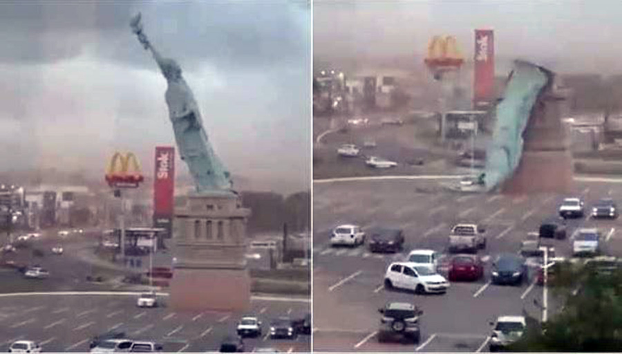 ब्राजिलमा रहेको यो स्ट्याच्यु अफ लिबर्टीको प्रतिकृति पार्किङ क्षेत्रको शोभा मानिन्थ्यो । आँधीका कारण करिब ७ तले घरको उचाइ बराबरको यो मूर्ति ढलेर टुक्रा–टुक्रा भयो ।