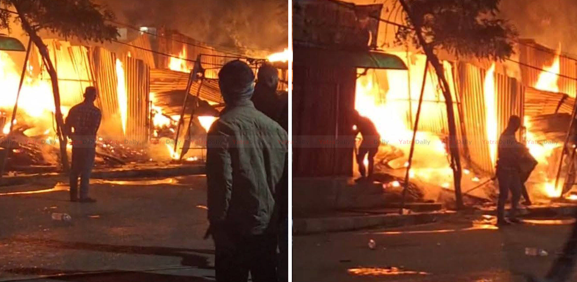 प्रत्यक्षदर्शीहरूका अनुसार रक्सी पसलभित्र खाना पकाउन प्रयोग गरिएको ग्याँस विस्फोट भएपछि ठूलो आवाजसहित आगो दन्किएको थियो । आगो तीव्र रूपमा फैलिँदा आसपासका लोहार पसल, घोडा बाँध्ने ठाउँ र अन्य अस्थायी संरचनाहरूमा पनि सल्किएको थियो ।