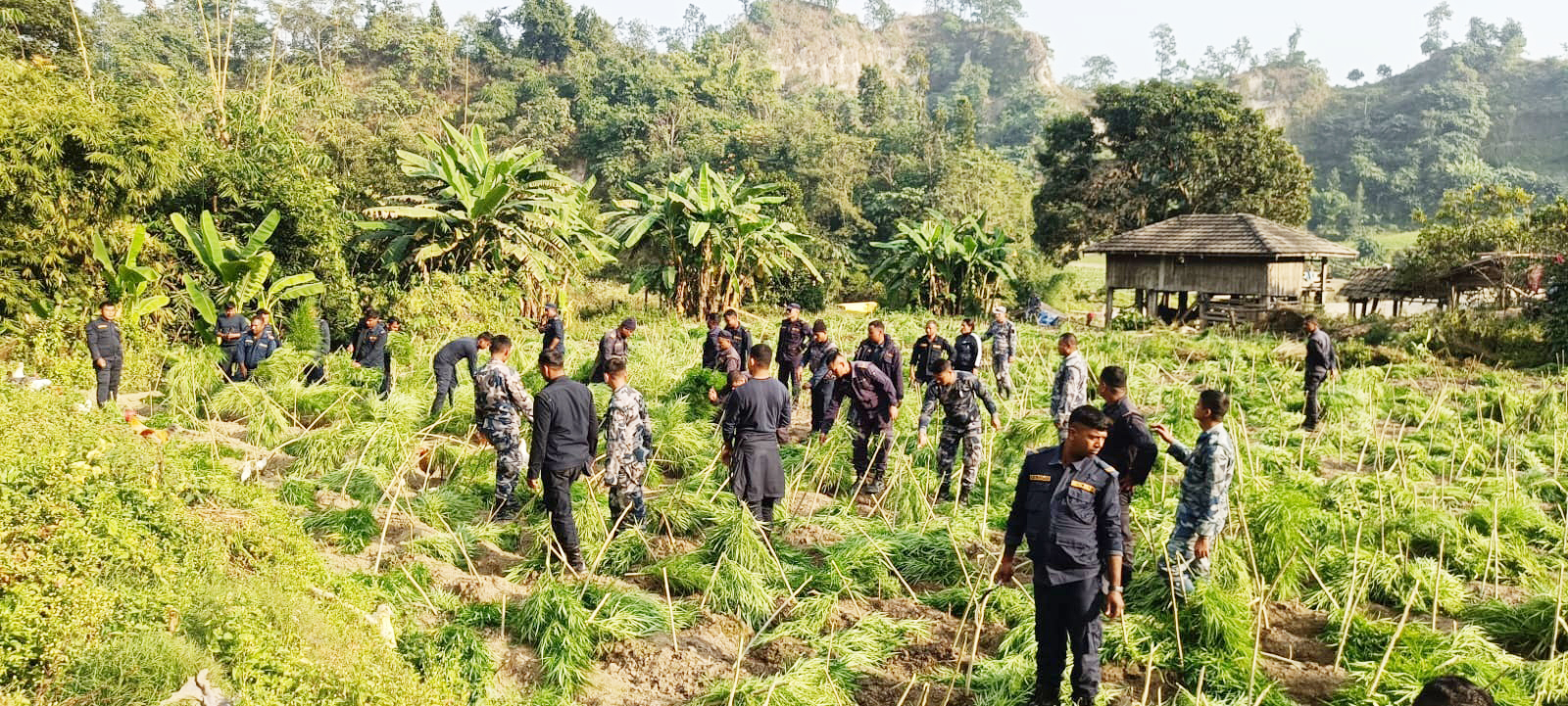 सर्लाही, ०७ पुष । जिल्लामा अवैध रूपमा गरिएको गाँजा खेती नष्ट गर्ने अभियान अन्तर्गत सर्लाहीको लालबन्दी नगरपालिका–१४ स्थित प्रताटोल, हात्ति सुढे, १५ बिघा, ९ बिघा, मत्स्य दोभान शिरलगायत चुरे क्षेत्रका विभिन्न स्थानमा लगाइएको अवैध गाँजा खेती नष्ट तथा फडानी गरिएको छ ।