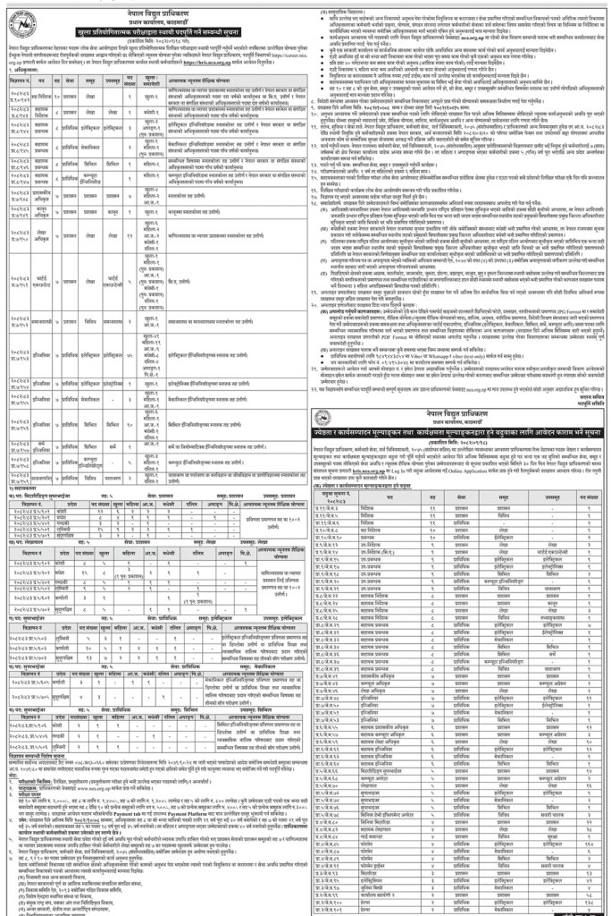 अधिकृतस्तरका सहनिर्देशकदेखि वातावरणविदसम्म १३२ जना र सहायकस्तरका मिटररिडिङ सुपरभाइजर, सुपरभाइजर र लेखापाल पदहरुमा १३० जनाका लागि विज्ञापन खुलेको छ ।