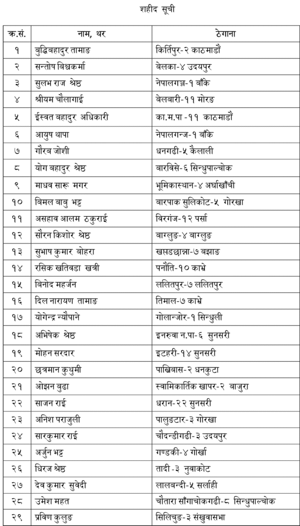 हेर्नुहाेस् जेनजी शहीदकाे सूची
