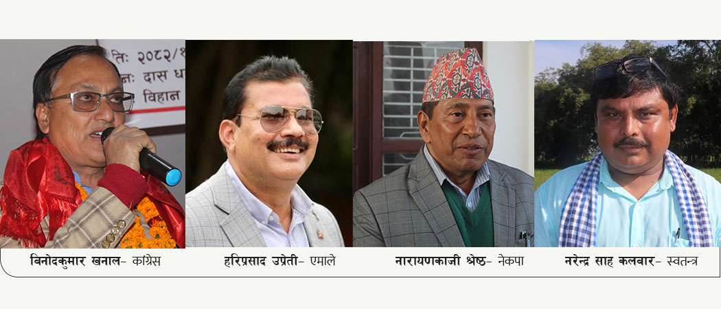 यसअघि थोरै मतले पराजित भए पनि यो पटक आफूले अवसर पाउने दाबी कलवारले गर्नुभएको छ । निवर्तमान प्रतिनिधि सभा सदस्य एवं एमालेका उम्मेदवार उप्रेतीले मतदाताले बाहिरी र धनीलाई भन्दा पनि दुःखमा सेवा गर्ने प्रतिनिधि छान्ने विश्वास व्यक्त गर्नुभयो ।