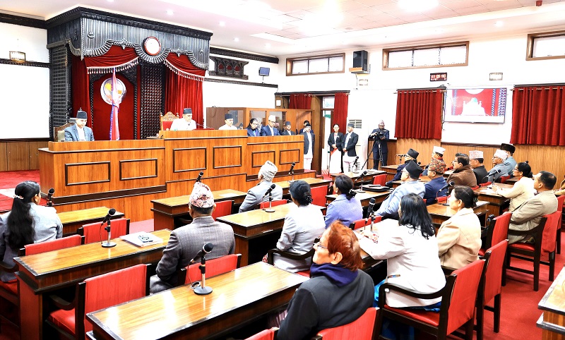 सङ्घीय संसद् सचिवालय सिंहदरबारमा आइतबार बसेको राष्ट्रियसभाको १९औँ अधिवेशनमा सहभागीहरु । तस्बिरः गोपाल दाहाल/रासस