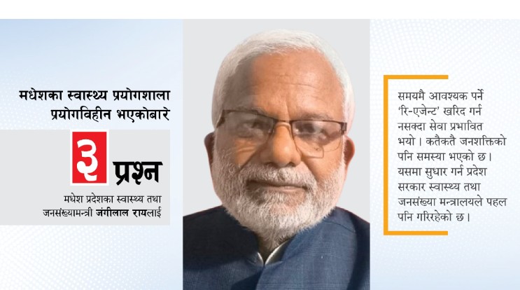 यस्ता अलपत्र अवस्थाका सुविधासम्पन्न ल्याब सञ्चालनमा ल्याउन के गर्दै हुनुहुन्छ र कहिलेसम्म सञ्चालनमा आउँछन् ?सबै जनस्वास्थ्य प्रयोगशालालाई सञ्चालनमा ल्याउन रि–एजेन्ट किन्न, कार्यरत कर्मचारीको तलब, सुविधा भुक्तानी गर्न काम अघि बढेको छ ।