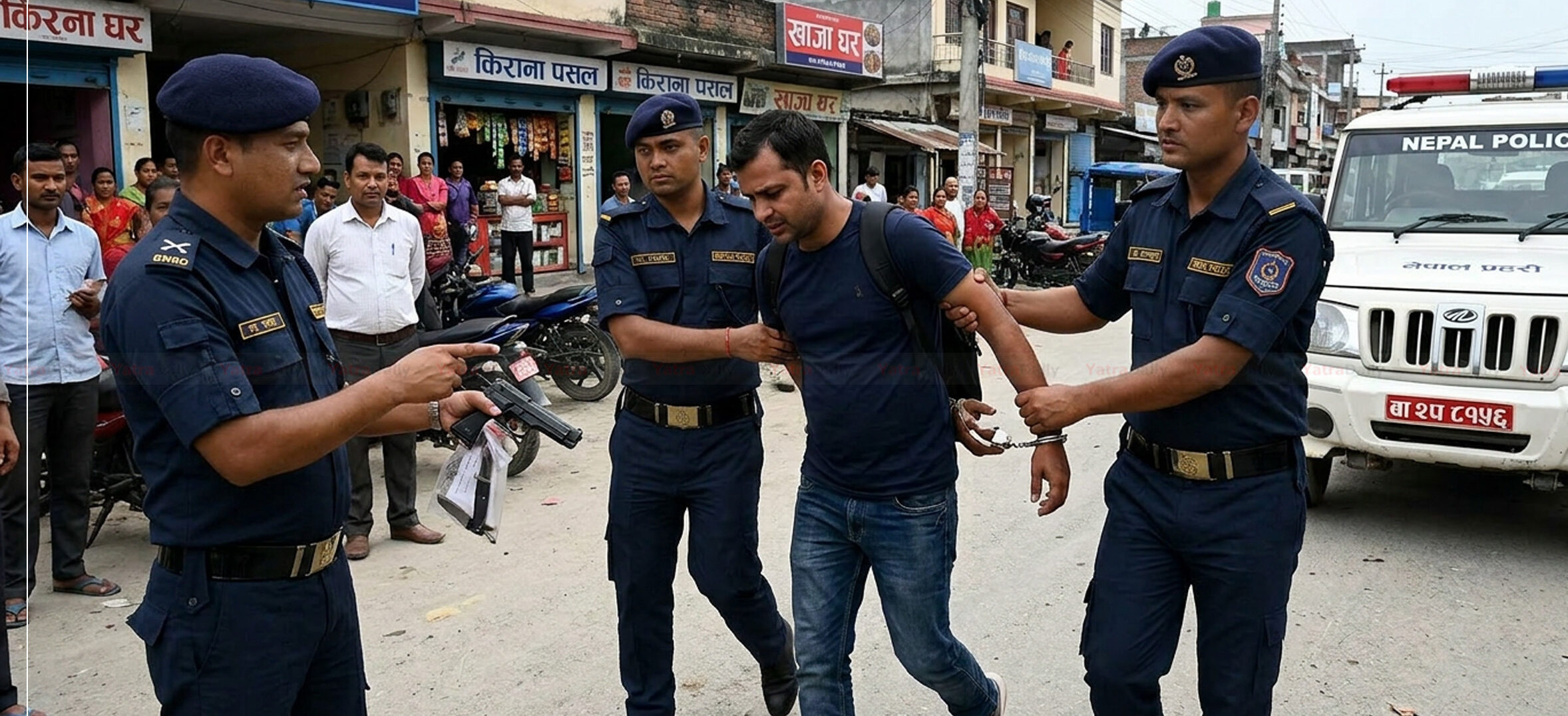 सोमबार साँझ करिब ६:३० बजेको समयमा शङ्कास्पद अवस्थामा फेला परेका दासलाई खानतलासी गर्दा उनले लगाएको पाइन्टभित्र लुकाई राखेको अवस्थामा १ थान कटुवा पेस्तोल बरामद भएको प्रहरीले जनाएको छ । पेस्तोलका साथै उनको साथबाट एउटा ओप्पो कम्पनीको मोबाइल र दुई वटा भारतीय सिम कार्ड समेत फेला परेको छ ।